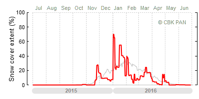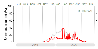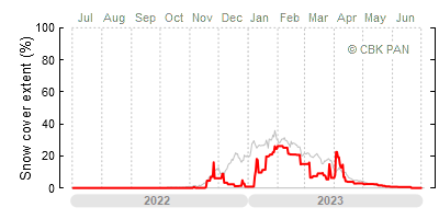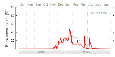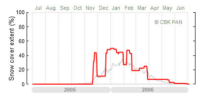 We would call a winter "harsh" if snow cover persisted for a long time and covered the largest possible area of the country. An example of such a situation in Poland is the winter of 2005/06, when snow covered almost the entire country from mid-December until the end of April. This significantly impacted the average for the entire year—statistically, on each day between July 1, 2005, and June 30, 2006, snow cover extended over as much as one-third of Poland!