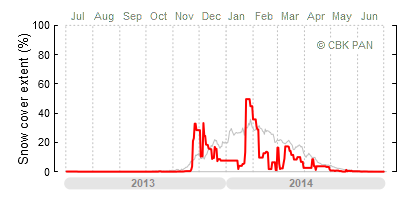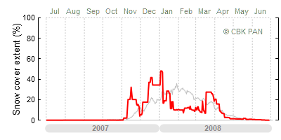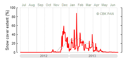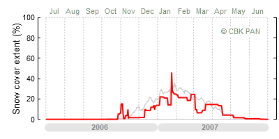 A mild winter is one where snow cover appears and quickly disappears, only occasionally covering more than 80-90 percent of the country. A good example of such a situation is the winter in Poland during the 2006/07 season, when snow appeared on a larger scale only at the turn of January and February.