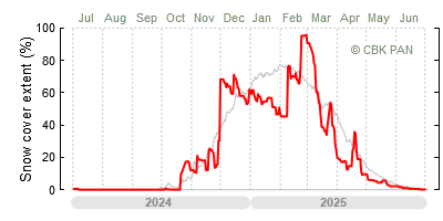 We would call a winter "harsh" if snow cover persisted for a long time and covered the largest possible area of the country. An example of such a situation in Poland is the winter of 2005/06, when snow covered almost the entire country from mid-December until the end of April. This significantly impacted the average for the entire year—statistically, on each day between July 1, 2005, and June 30, 2006, snow cover extended over as much as one-third of Poland!