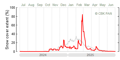 We would call a winter "harsh" if snow cover persisted for a long time and covered the largest possible area of the country. An example of such a situation in Poland is the winter of 2005/06, when snow covered almost the entire country from mid-December until the end of April. This significantly impacted the average for the entire year—statistically, on each day between July 1, 2005, and June 30, 2006, snow cover extended over as much as one-third of Poland!