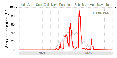 We would call a winter "harsh" if snow cover persisted for a long time and covered the largest possible area of the country. An example of such a situation in Poland is the winter of 2005/06, when snow covered almost the entire country from mid-December until the end of April. This significantly impacted the average for the entire year—statistically, on each day between July 1, 2005, and June 30, 2006, snow cover extended over as much as one-third of Poland!