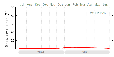 We would call a winter "harsh" if snow cover persisted for a long time and covered the largest possible area of the country. An example of such a situation in Poland is the winter of 2005/06, when snow covered almost the entire country from mid-December until the end of April. This significantly impacted the average for the entire year—statistically, on each day between July 1, 2005, and June 30, 2006, snow cover extended over as much as one-third of Poland!