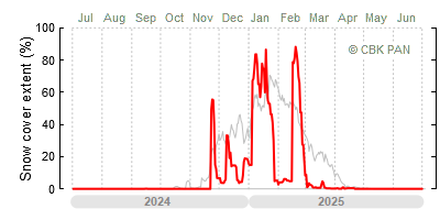 We would call a winter "harsh" if snow cover persisted for a long time and covered the largest possible area of the country. An example of such a situation in Poland is the winter of 2005/06, when snow covered almost the entire country from mid-December until the end of April. This significantly impacted the average for the entire year—statistically, on each day between July 1, 2005, and June 30, 2006, snow cover extended over as much as one-third of Poland!