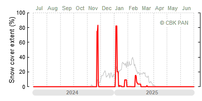 We would call a winter "harsh" if snow cover persisted for a long time and covered the largest possible area of the country. An example of such a situation in Poland is the winter of 2005/06, when snow covered almost the entire country from mid-December until the end of April. This significantly impacted the average for the entire year—statistically, on each day between July 1, 2005, and June 30, 2006, snow cover extended over as much as one-third of Poland!