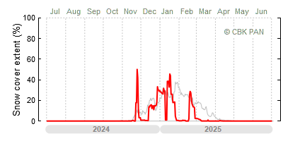 We would call a winter "harsh" if snow cover persisted for a long time and covered the largest possible area of the country. An example of such a situation in Poland is the winter of 2005/06, when snow covered almost the entire country from mid-December until the end of April. This significantly impacted the average for the entire year—statistically, on each day between July 1, 2005, and June 30, 2006, snow cover extended over as much as one-third of Poland!