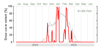 We would call a winter "harsh" if snow cover persisted for a long time and covered the largest possible area of the country. An example of such a situation in Poland is the winter of 2005/06, when snow covered almost the entire country from mid-December until the end of April. This significantly impacted the average for the entire year—statistically, on each day between July 1, 2005, and June 30, 2006, snow cover extended over as much as one-third of Poland!