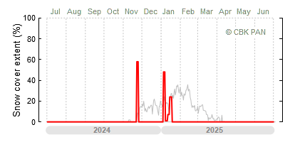 We would call a winter "harsh" if snow cover persisted for a long time and covered the largest possible area of the country. An example of such a situation in Poland is the winter of 2005/06, when snow covered almost the entire country from mid-December until the end of April. This significantly impacted the average for the entire year—statistically, on each day between July 1, 2005, and June 30, 2006, snow cover extended over as much as one-third of Poland!