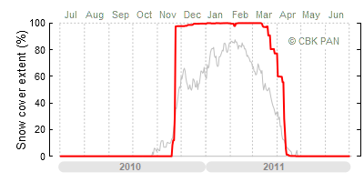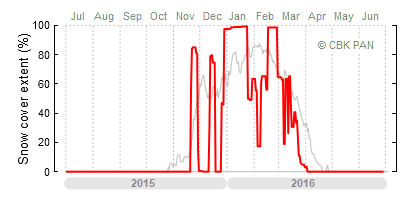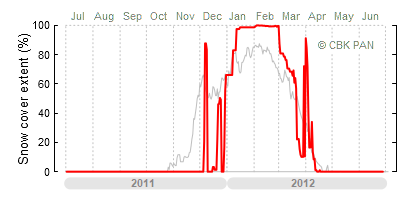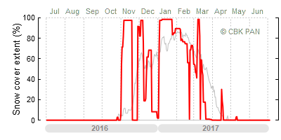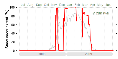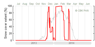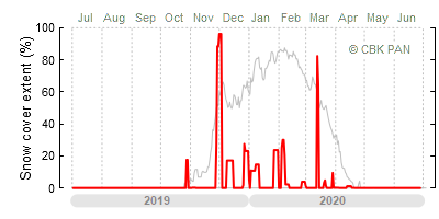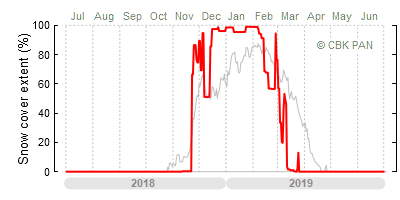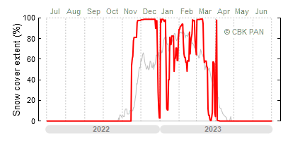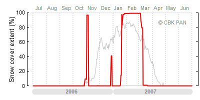 A mild winter is one where snow cover appears and quickly disappears, only occasionally covering more than 80-90 percent of the country. A good example of such a situation is the winter in Poland during the 2006/07 season, when snow appeared on a larger scale only at the turn of January and February.
