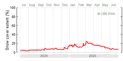 We would call a winter "harsh" if snow cover persisted for a long time and covered the largest possible area of the country. An example of such a situation in Poland is the winter of 2005/06, when snow covered almost the entire country from mid-December until the end of April. This significantly impacted the average for the entire year—statistically, on each day between July 1, 2005, and June 30, 2006, snow cover extended over as much as one-third of Poland!