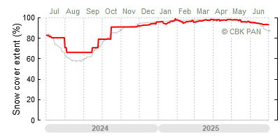 We would call a winter "harsh" if snow cover persisted for a long time and covered the largest possible area of the country. An example of such a situation in Poland is the winter of 2005/06, when snow covered almost the entire country from mid-December until the end of April. This significantly impacted the average for the entire year—statistically, on each day between July 1, 2005, and June 30, 2006, snow cover extended over as much as one-third of Poland!