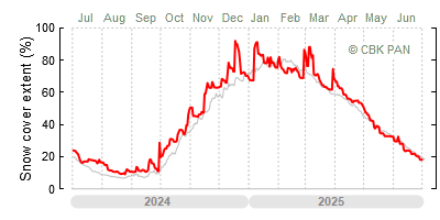 We would call a winter "harsh" if snow cover persisted for a long time and covered the largest possible area of the country. An example of such a situation in Poland is the winter of 2005/06, when snow covered almost the entire country from mid-December until the end of April. This significantly impacted the average for the entire year—statistically, on each day between July 1, 2005, and June 30, 2006, snow cover extended over as much as one-third of Poland!